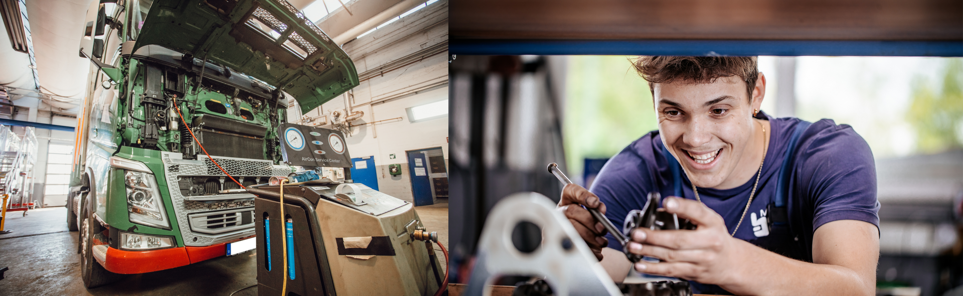Du siehst dich als Allrounder in der Werkstatt und schraubst gerne am großen Fahrzeug? Dann wähle den Schwerpunkt Nutzfahrzeugtechnik und lerne bei uns, Sattelschlepper, Unimogs, Lkws oder Wohnmobile wieder fit zu machen. In der Ausbildung lernst du alles rund um die Technik und Instandhaltung und wirst Spezialist für das Große.